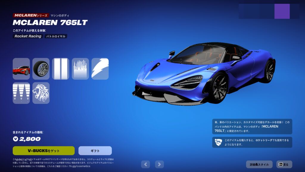 今回は、フォートナイトに新しく追加された車スキン「McLaren 765LT」を紹介する。