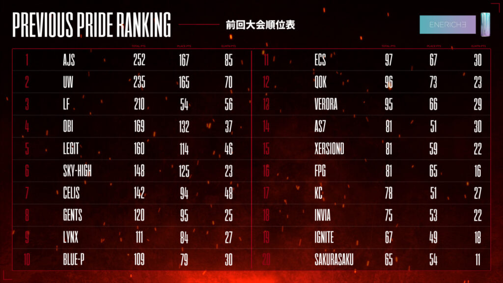 「PRIDE」は、フォートナイトのe-sportsチーム同士が戦う大会である。過去には「AJS」,「UW」,「IGNITE」などの強豪や、有名選手が参戦した。