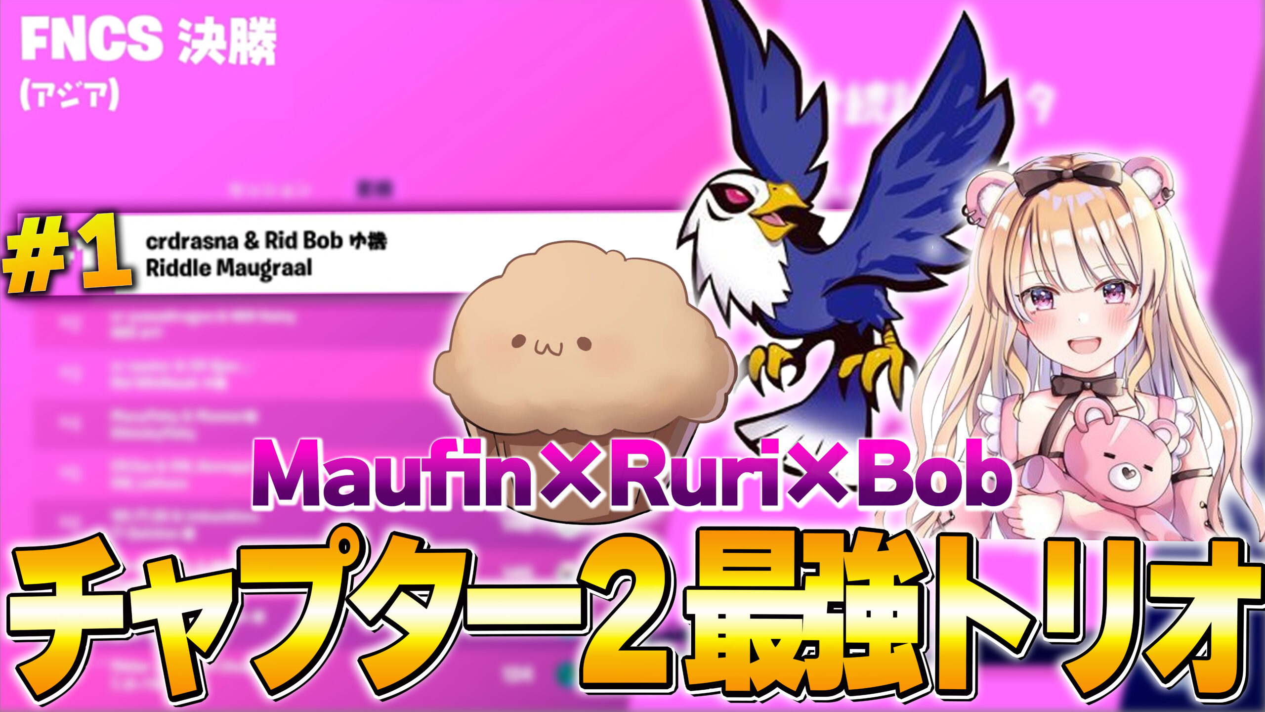 ぼぶくん:2019年にプロチームRIDDLEに加入。特に、2019年から2021年にかけてさまざまな大会で優秀な成績を残した。YouTubeチャンネルも活発で、登録者数は30万人を超え、フォートナイトのプレイを中心に多くのファンを魅了している。最近は、インフルエンサーとしてSNS活動で活躍している。
