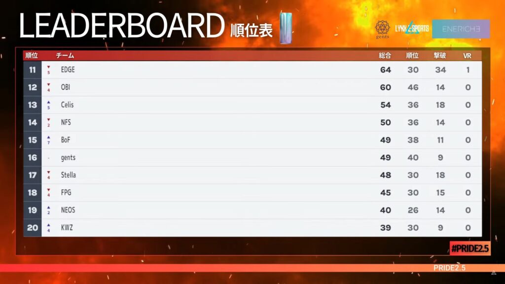 LYNX 及び gents により開催されてきたFortnite大会『PRIDE』の歴代順位をまとめた。