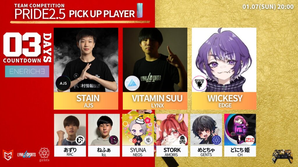 「PRIDE」は、フォートナイトのe-sportsチーム同士が戦う大会である。過去には「AJS」,「UW」,「IGNITE」などの強豪や、世界大会の出場経験がある有名選手も参戦した。今回のPRIDEは、32のe-sportsチームが戦う。