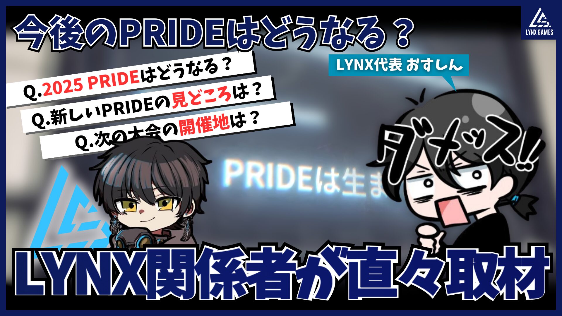 まずは春のSPLIT1ですかね。最初にPRIDE2025 CHAMPIONSHIP出場の切符を獲得するのはどのチームか注目です。あとはやはり、最後にある『PRIDE2025 CHAMPIONSHIP』です。PRIDE史上1番のイベントにする予定ですので・・・賞金額などにも注目ですね!